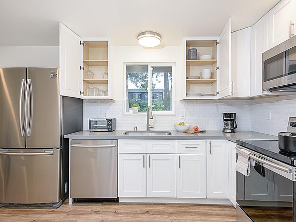 FULLY FURNISHED CORPORATE RENTAL near downtown Kirkland. Minimum 1-month stay is $5250/ month ($175/night). As noted, this place has been taken by guests through 10.11.25. Includes everything you'll need for your stay, plus high-speed internet, utilities, yard care & plenty of on-site parking. Studs out remodel includes all new surfaces. Commercial luxury vinyl, quartz countertops, white & rustic cabinetry, new windows, furnace, drywall, fixtures, recessed lighting, and new appliances, including a full-size stackable LG laundry center. All on 1/3 acre with a fenced backyard & expansive deck. Enjoy lovely sunsets & Olympic views! Kirk Elem & Middle plus Kirkland Urban are within 1 mile. Google Campus is 1.2 miles. Walkable to Cross Kirkland Corridor, which traverses the city for nearly six miles, connecting 8 neighborhoods, 4 major business districts, 12+ parks & several public schools.