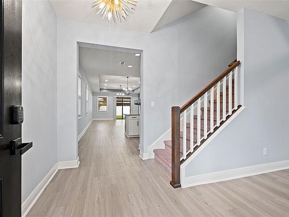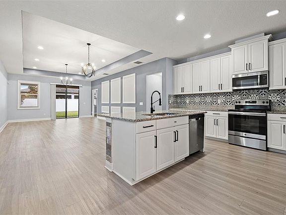Welcome to this exquisite M/I Homes build located in the highly sought-after Carlton Lakes community. This thoughtfully designed residence boasts 4 bedrooms, 3 full baths, 2 car garage and 2,998 square feet of beautifully curated living space with a versatile upstairs theater/bonus room. Situated on a large, fully fenced backyard, this home delivers the perfect blend of privacy, comfort, and sophistication. From the moment you arrive, you’ll be captivated by the inviting curb appeal and expansive covered entryway. Step inside and you’re greeted by soaring ceilings, abundant natural light, and wood plank luxury vinyl flooring that flows gracefully throughout the main living areas, setting the tone for a home that is as elegant as it is functional. The formal living and entry spaces make a grand first impression, with sightlines leading to the beautiful staircase featuring a rich wood railing and architectural detail that anchors the heart of the home. As you move into the expansive open-concept kitchen and family room, the space unfolds into a truly impressive gathering area ideal for entertaining and everyday living. At the center of it all is a massive granite island—the perfect hub for casual dining or morning coffee. The kitchen is equipped with 42-inch solid wood cabinetry, stainless steel appliances, a walk-in closet pantry, and designer finishes, all contributing to a kitchen that’s as beautiful as it is practical. Adjacent is a spacious dining area, and the flow continues into the oversized family room, enhanced with a custom feature wall, tray ceilings, and recessed lighting, offering a luxurious ambiance for any occasion. The main level primary suite is a true retreat, with high tray ceilings, plush carpet, and a sprawling walk-in closet. The private ensuite bath rivals a spa experience with its granite-topped dual vanities, framed mirrors, a walk-in Roman-style shower, and an added linen closet for optimal storage. Two additional bedrooms and a stylish full bath with matching granite and wood cabinetry are thoughtfully positioned on the main level. Upstairs features a full bonus room/theatre space that connects to a private fourth bedroom with a Jack & Jill style bathroom, making it ideal for family & guests. Whether you're hosting movie nights or looking for a quiet home office retreat, the possibilities are endless. Additional home features include: Energy-efficient construction (Green Home) with low utility bills, Custom millwork, including 6” baseboards and framed windows, Epoxy-finished garage floor, Hurricane shutters, ample storage space and multiple feature accent walls. The Carlton Lakes community offers an impressive array of amenities, including a clubhouse, resort-style pool, playgrounds, parks, and scenic walking paths. Ideally located with easy access to Speciality dining, shopping and with an easy commute to I-75, Crosstown Expressway, Downtown Tampa and Florida's award-winning Gulf Coast beaches.