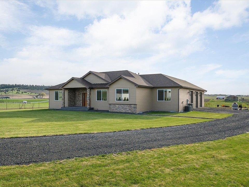 Living on Peone is a dream! 10 acres of beautiful farmland with incredible views of the surrounding rolling hills and Mt. Spokane. This custom built home has everything you need with 4 bedrooms and 3 bathrooms. The kitchen has beautiful wood cabinets, granite countertops, stainless steel appliances and jaw dropping views of the back acreage! The master bathroom is a showstopper with double vanity, jetted tub, and beautiful walk in shower! The home has an oversized 3 car garage, 50+gpm well, sprinkler system, garden area and fenced in pasture. Start your acreage living today!