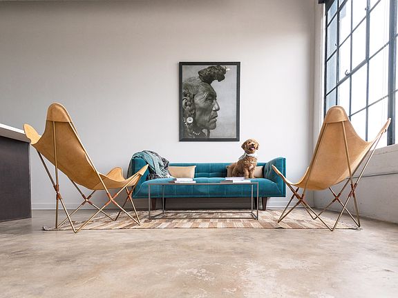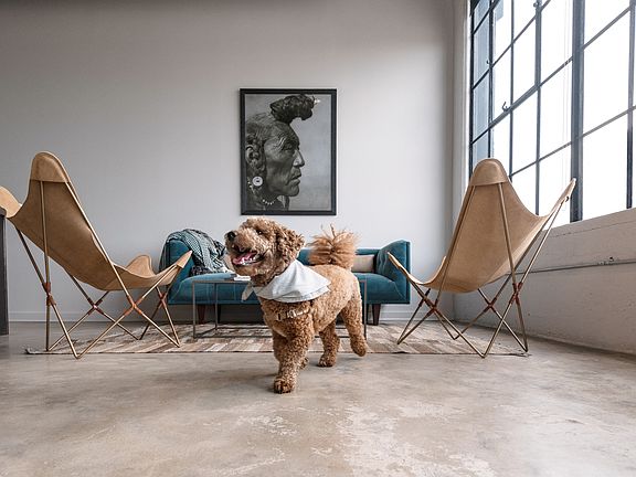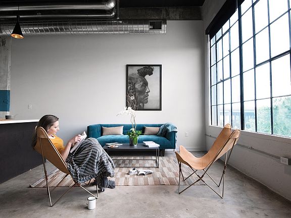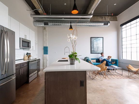 One-Bedroom Loft Apartment Home with Floor to Ceiling Windows, Original 1927 Polished Concrete Floors, Subway Tiled Bath with Mosaic Flooring, Soaker Bathtub Options, and Washer/Dryer