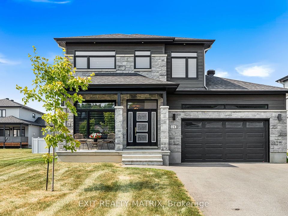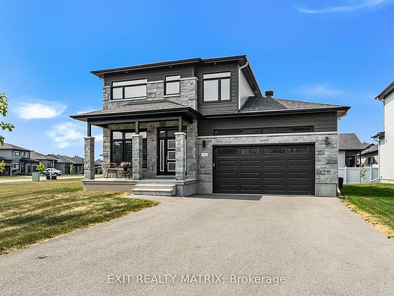 Stunning Modern Home on Oversized Corner Lot in Embrun! Welcome to your dream home, perfectly nestled on an oversized 184-ft corner lot in one of Embruns most sought-after neighbourhoods! This beautifully designed property offers high-end finishes, incredible living space, and a layout tailored for modern comfort and style. Step inside to discover a bright, open-concept main level that's both stylish and functional. The elegant dining area and cozy living room - complete with a charming fireplace and sun-filled windows - set the tone for warm gatherings and everyday living. The sleek, modern kitchen is a showstopper, featuring a sit-at island with a waterfall counter, abundant cabinetry, and premium finishes throughout. You'll also find a main floor office, garage access, and a convenient partial bathroom, ideal for busy households. The garage is fully finished, perfect for a home gym, workshop, or bonus living space. Upstairs, you'll find three spacious bedrooms, each with a walk-in-closet, and two bathrooms, including a luxurious primary retreat with a spa-like ensuite, boasting a glass shower, soaker tub, and double vanity. The basement offers an additional bedroom and potential for even more space with a rough-in for a bathroom already in place. Outside, enjoy summer evenings on your lovely backyard deck and take in the privacy and space of your generously sized yard, perfect for entertaining or relaxing. Located near parks, schools, and everyday amenities, this home truly has it all. Don't miss your chance to own this stunning property in the heart of Embrun!