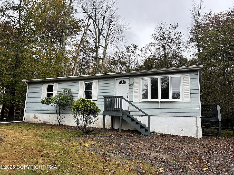 HURRY! This one won't last long. Updated kitchen and bathroom. Nice laminate flooring. Full basement! This home has a large deck overlooking the forest which is state gamelands. Great Vacation community with pools and lakes that allows short term rentals.