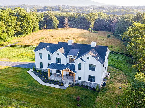 Nestled in both Fauquier & Loudoun County, this expansive modern Farmhouse is a newly constructed gem in historic Upperville, boasting breathtaking western Blue Ridge mountain views. Embrace luxury living with approximately 6,000 sq feet of thoughtfully designed space, perfectly catering to today's lifestyle. Two primary suites (one on the main level), multiple home offices, and 5 electric fireplaces create a seamless blend of comfort and convenience. Step inside and be captivated by the open floorplan, highlighted by a dramatic floor-to-ceiling stone fireplace, soaring 27 ft ceilings, and exposed red cedar trusses & columns in the living room. Tasteful upgrades throughout, from the stately mahogany 9’ entry door to the HardiePlank extra wide exterior siding, showcase the home's attention to detail and quality craftsmanship. The heart of the home, the kitchen, impresses with an 8-burner ZLINE gas range, oversized quartz island, custom cabinetry, and elegant lighting fixtures. A separate pantry and mudroom provide added functionality and organization. Retreat to the lavish bathrooms adorned with attractive large format tile and marble floors & niches, evoking a spa-like ambiance. The fully finished basement is an entertainer's dream, featuring additional living space, a wet bar, theater room, wine room, bonus bedroom, and full bath. Park with ease in the oversized 2-car garage, complete with 2 fast charging EV connections. The rear terrace invites relaxation with its private setting and mesmerizing scenic vistas. A gas line is already installed, ready for your grill or outdoor fireplace, and the space is primed for a custom pool design to create your own personal oasis. Practicality meets modernity as the home is hardwired for CAT6 security, ensuring peace of mind, and FIBER internet will be available onsite, ensuring high-speed connectivity. Situated in an amazing location, you'll find yourself minutes from the historic charm of Upperville & Middleburg, just 30 miles from Dulles airport, and an easy 1-hour commute to the bustling city life of Washington, DC.