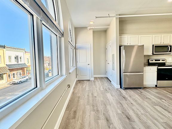 Available Now! Move in ready! Absolutely beautiful modern industrial inspired style 2 bedroom suite located on the second floor right on Main Street in the city of Radford! Stainless steel kitchen appliances; range, refrigerator, dishwasher, and microwave with beautiful marble countertops! Full size stackable washing machine and dryer included! Central heat and air conditioning. Walking distance to the public transit bus line.