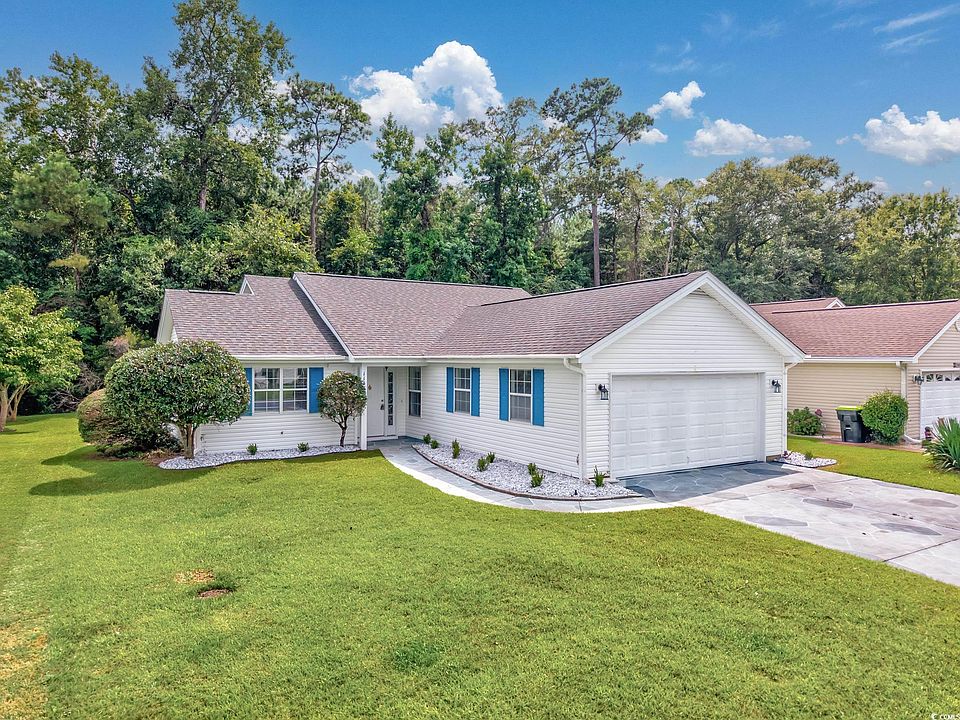 Welcome home to this charming single-level, two-bedroom, two-bath home offers both comfort and style in the desirable Island Green community of Myrtle Beach. Featuring luxury vinyl plank flooring & fresh paint throughout, the home boasts a spacious, open-concept design. The large family room is highlighted by vaulted ceilings and a ceiling fan, seamlessly flowing into the modern kitchen with new countertops and stainless steel appliances. The home includes a formal dining room as well as a versatile breakfast nook, perfect for casual dining, a home office, or a cozy den. The expansive owner's suite also features vaulted ceilings, a ceiling fan, a generous walk-in closet, and a luxurious en suite bathroom complete with a large soaking tub, walk-in shower, and double sinks. At the rear of the home, a bright Carolina room opens onto a sizable patio, ideal for outdoor entertaining. The property backs up to a wooded area, offering privacy and a serene backdrop. Conveniently located just a short drive from Myrtle Beach attractions, shopping, dining, and beaches, this home perfectly combines peaceful living with easy access to coastal amenities. *Owner is a licensed SC realtor. *Some photos have been virtually staged.