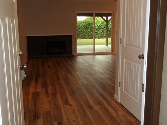 Updated Single story 3 bedroom 2 bath home with 2 car attached garage with remote and direct access into home. Garage wired for electric vehicle charging up to 40amps. Newer exterior paint & interior painted with two toned custom paint, carpet in bedrooms, wood plank flooring throughout, newer window coverings, ceiling fans, A/C, and whole house attic fan. Living room with fireplace that opens up to eat-in family kitchen and double slider doors to large backyard. Kitchen has newer Shaker soft-close cabinets, quartz counter tops, recessed lighting, Pendant lights, dishwasher, gas stove and built-in microwave oven. Large master bedroom with walk-in closet, attached bath with dual sinks, vanity with quartz counter tops, and shower stall. Hall bath has newer lighting, shower/tub stall, and vanity with quartz counter top. Large lush backyard with patio cover, 2 fig trees, & loquat fruit tree. Laundry hook-ups for full sized washer and dryer located in garage. Gardener is included in rent. Walking distance to neighborhood park.