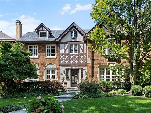 Welcome to this remarkable 4 bed, 3.2 bath Tudor featuring timeless elegance with thoughtful modern updates. Perfectly situated across from Lindberg Park and just two blocks from award-winning Mann School, this home delivers the ideal balance of luxury living and family comfort. Step inside to expansive, light-filled rooms with original chandeliers, leaded glass details, and classic moldings that highlight the home's rich character. The formal living and dining rooms are perfect for entertaining, while the Juliette windows in the dining area invite a refreshing summer breeze. The updated chef's kitchen combines function and style with quartz countertops, 42" maple cabinets with custom organizers, a Wolf range, Sub-Zero refrigerator, and Miele dishwasher. Enjoy relaxing and unwinding in the expanded family room that connects to the bluestone porch with sunshades-an inviting spot for morning coffee or evening gatherings. Upstairs, the luxurious primary wing offers a spacious bedroom, sitting area, private office, spa-like bath with soaking tub and walk-in shower, and brand-new California Closets. Additional bedrooms are generously sized, featuring hardwood floors. For convenience, laundry is located on the second floor. The finished lower level adds a versatile recreation room and ample storage, while the third floor is ready for your personal touch. Outside, the beautifully landscaped yard provides a private retreat with mature plantings, lush greenery, and ample space for play or relaxation. Recent updates ensure peace of mind, including most windows replaced in 2007, a roof just 4 years old, two new water heaters, dual-zone Nest thermostats, and Lutron lighting. Blending timeless Tudor craftsmanship with today's finest amenities, this home offers the space, style, and location families dream of-all in one of Oak Park's most desirable neighborhoods.