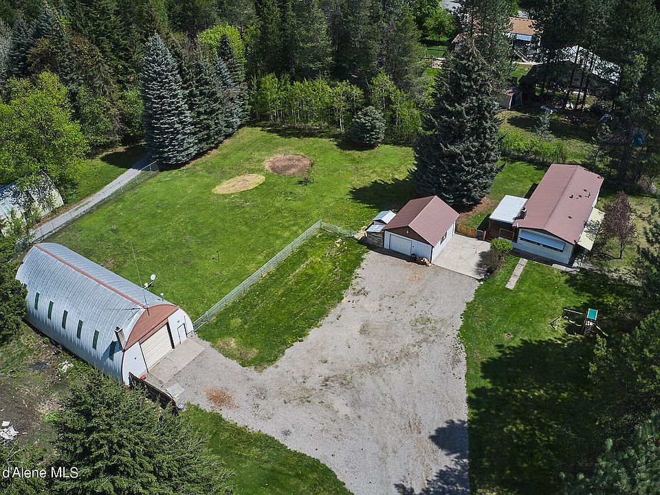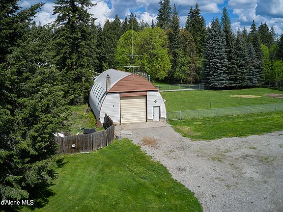 Wonderful convenient location on 1.75 acre just outside of Rathdrum on paved roads. Fenced grassy yard surrounded by mature trees with no HOA or CC&R's to bring your animals to. Spacious manufactured home offering 3 bedrooms, 2 baths with new wood stove. No carpeting all new LVP and spacious bedrooms. Property offers a 2 car detached garage and a large 30' x 60' quonset hut for storage and workshop space. Property is gated, covered front porch for relaxing, newer water heater and Air Conditioning. Easy commute to ID or WA.