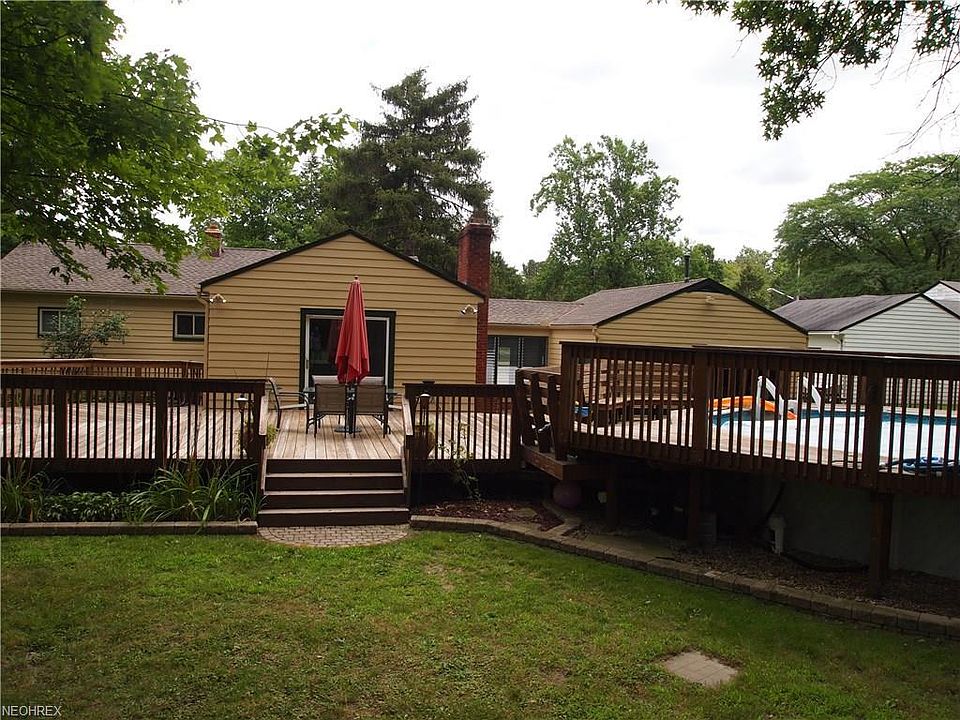 You will Vacation everyday when you make this house YOUR home! The back yard oasis has everything you need for entertaining or just to enjoy a Sunny day. Multi level 1800 sq feet of Decking/Pool/Pond/Outdoor BBQ/Stone Patio/Outbuilding with side porch. Some of the Seller improvements throughout this home include the spectacular New Kitchen from top to bottom/New Baths/Carpet/Prof painted inside and out/Electrical panel/Furnace 6yrs/Roof 7yrs/Windows 8-9yrs/New garage doors 7/17. This spacious Ranch has 3 nice size bedrooms and a large first floor Family Rm with a fireplace. The lower level has plenty of room for family gatherings. Immediate occupancy is available!