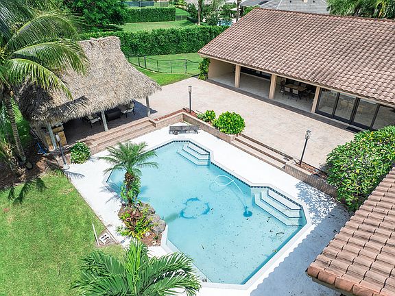 Unwind in luxury with this fully furnished 5 bedroom, 5 bathroom estate. Nestled on nearly an acre, this entertainer's paradise boasts a sprawling outdoor patio, complete with a Lanai and inviting pool featuring two shallow ends - perfect for water volleyball. Enjoy fishing in your own pond, while all utilities and maintenance are covered. Conveniently located near 595 and the Sawgrass, with shopping just moments away, this home offers the ultimate in comfort and convenience.