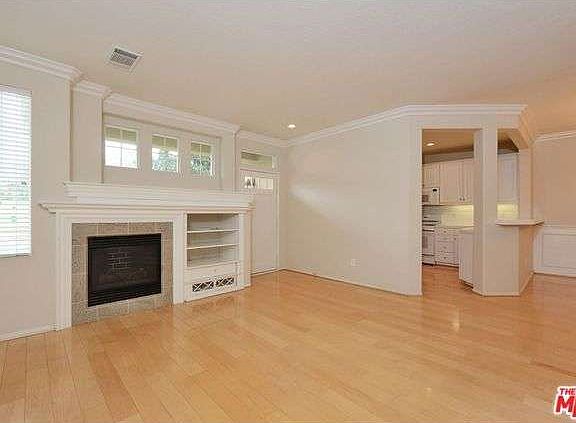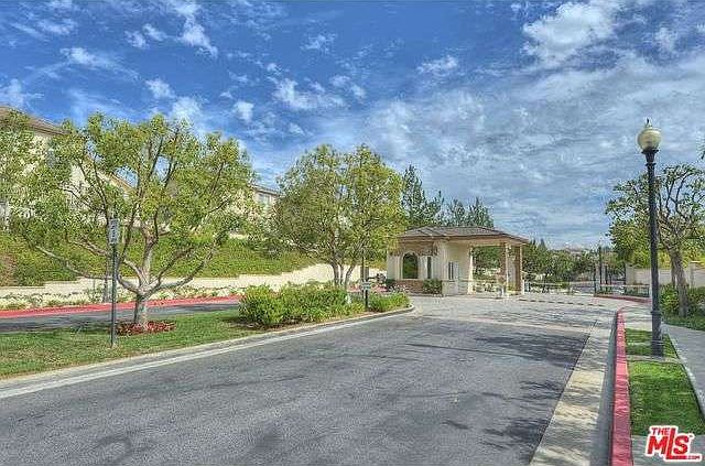Located in prestigious Promenade gated community in Porter Ranch. This townhouse is a corner unit and features 3 bedrooms and 3 baths 1 bedroom conveniently located downstairs. Large kitchen with breakfast area opens into the formal Dining room. Living room with fireplace and built in media consul boasts hardwood floors. Dinning opens onto private patio with custom fountain. Upstairs includes a master suite with walk in closet with custom built-ins. Laundry room and 3rd bedroom, recessed light and crown molding though out, garage is attached with direct access.