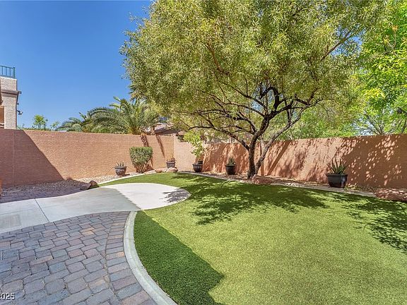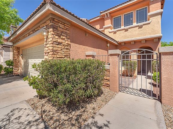 This beautiful 3-bedroom, 2-bathroom home features stunning stone front accents and mature landscaping. Step inside to find an inviting entrance with neutral tile floors and elegant tile accents, soaring ceilings, and an open, airy feel throughout. The kitchen is a true highlight, offering crisp white cabinetry, sleek quartz countertops, stylish accent handles, and recessed lighting for a modern touch. The spacious master bathroom boasts both a separate shower and tub, along with a large walk-in closet. Outside, enjoy a low-maintenance yard, perfect for relaxing or entertaining. Located just a short drive from Downtown Summerlin, Lifetime Fitness, Red Rock Canyon Conservation Area, shopping, dining, and so much more!
