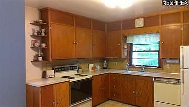 Country living. Solid Crafted Home with a large kitchen with lots of counter space and cabinets. Original woodwork. One acre lot with woods behind.
