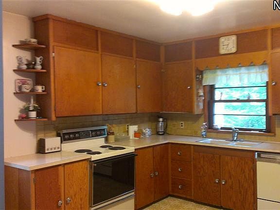 Country living. Solid Crafted Home with a large kitchen with lots of counter space and cabinets. Original woodwork. One acre lot with woods behind.