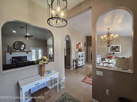 This is where tranquility meets convenience, a one-of-a-kind property with an amazing location. An updated and immaculately maintained private home situated on 1.3 acres; a serene and private oasis, only a few minutes from major shopping outlets, Suncoast Parkway 589, the newly constructed Oak Hill medical complex, and so much more. This gorgeous home is an open floor plan. With 2,061 sqft of living space, 4 bedrooms / 2 bathrooms split floor plan with ample closets and 15 ft. vaulted ceilings that flow throughout the home, you'll have plenty of space. The large primary bedroom retreat offers private entry to the pool, spacious his and her walk-in closets, and an ensuite bathroom with a huge walk-in shower and two sinks. The other three bedrooms are also large with generously sized closets. This property offers complete privacy on a large, end lot with no neighbor-facing windows. There's a private and pristine screened pool with custom-built tiki bar. Perfectly situated behind the pool area is a large paver patio with a firepit and space for a grill. Pool and patio pavers were sanded and resealed in 2025. The huge yard, with desirable amenities, provides the perfect space for any occasion - entertaining or unwinding after a long day. An additional storage structure is in the backyard. This property has been well cared for and is turnkey with plentiful upgrades inside and out. The seller planned to stay long term, so all upgrades were completed with quality in mind. Updates include master bedroom and bathroom remodeled with top quality finishes; new flooring throughout home; kitchen cabinetry and appliances updated; replaced lighting fixtures, fans, and hardware throughout interior and exterior of home; new pool equipment and pump; updated exterior shutters and landscaping. New roof in 2022. New A/C in 2022. New W/D 2021. No HOA or CCD. This home boasts ample parking options with a 3-car, large garage and an expansive driveway - park your motor home, boats, and cars with no hassle. Still not enough parking? Don't worry, the driveway is set back, providing your own personal mini parking lot at the base of the driveway. The garage is finished off and includes retractable privacy screens - easily convertible to your dream man cave or crafting space.