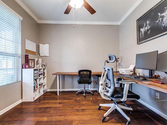 Welcome to this spacious and thoughtfully designed 4-bedroom, 2.5-bathroom home nestled in the Woodmark community. With over 2500 square feet of living space, this home offers the perfect blend of comfort, functionality, and style. Step inside to find a private downstairs study featuring hardwood floors—ideal for working from home. The inviting living room also boasts hardwood flooring and flows seamlessly into the open-concept kitchen, which is equipped with sleek granite countertops, stainless steel appliances, and ample cabinetry. The large primary suite is located on the main floor and includes an en-suite bathroom complete with double vanities, a soaking tub, separate shower, and a generous walk-in closet. Upstairs, you'll find three additional bedrooms, a full bathroom, and a versatile game room/flex space. Enjoy outdoor living in the expansive backyard, featuring a covered patio and a custom firepit area—perfect for entertaining or relaxing evenings at home.