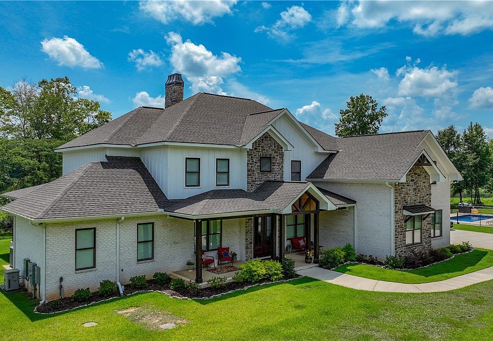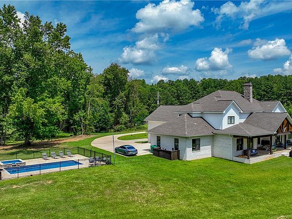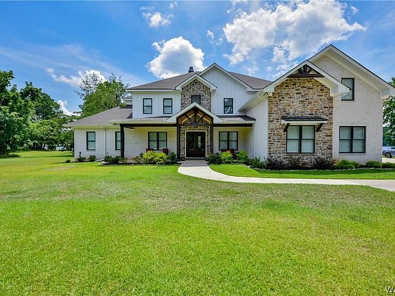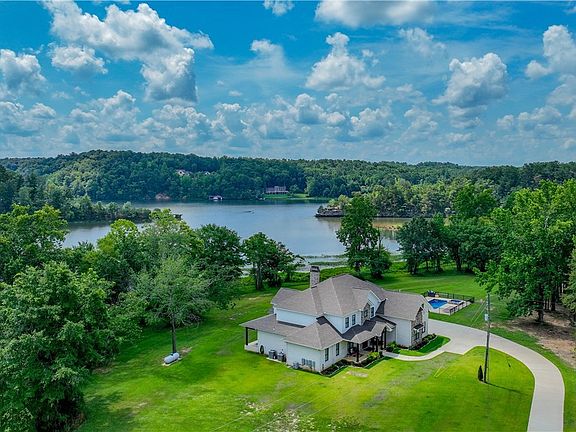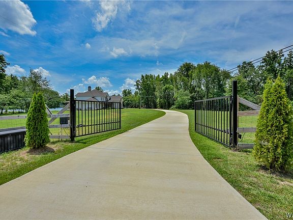 Amazing price-LIKE NEW CUSTOM built 2022 with luxury and durability in mind. Own this Breathtaking compound (fenced/gated) 1670 ft of FLAT water frontage-Lake Tuscaloosa. Enjoy sunrise views over TREASURE ISLAND-wildlife (heron, bald eagles). Porcelain tile downstairs-hardwood upstairs. Primary bedroom suite w/ luxury bathroom- soaking tub-lg. shower-main floor. Additional 6th bedroom w/ custom bunks on main floor. Majestic study.Kitchen can serve dozens! Great water views. Shaved ice-Pot filler, 2 ovens- Full-size side-by-side freezer/fridge.Granite. 4 bedrooms up- playroom. 2 -50 gal water heaters- gas & electric/Generator. Fiberglass heated pool.Rock spillover waterfall hot tub. Amazing views!Floating boat house - sun pier,covered area and two slips. Beautiful meandering drive to home.