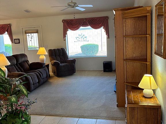 Beautiful kitchen designed for the wife, her desk, her laundry rm, & pantry, all easy to access! This split bedroom, den & 2 baths are perfect for company & family. The kitchen, dining area & great rm folds into a perfect entertainment center. The 2 & 3/4 car garage & large back yard compliments the rest of a perfect home, furnished & ready for you. This 55 & older resort has a low HOA of $915 a YEAR, & includes all the activities you can imagine. It has golf, tennis, pickleball, softball, woodshop, 2 exercise rms, 2 pools, & the list goes on.