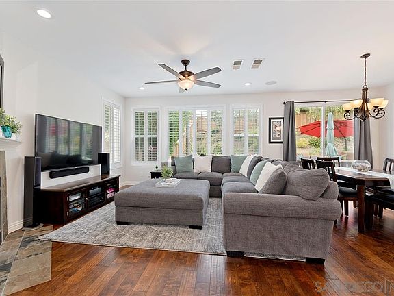 Check out the Virtual Tour and Video links! Bright and Open floor plan! This highly upgraded Morningside residence is in the top-rated Poway Unified School District (Creekside elem.) and has amazing curb appeal with tropical landscaping front and back. Trailbrook Ln does not backup to Poway Rd and is very safe and quiet. Some of the upgrades include: modern remodeled kitchen, wood floors, plantation shutters, built in desk in upstairs loft, LED recessed lighting throughout...see more in the SUPPLEMENT