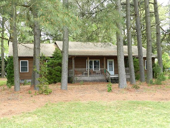 Log Cabin nestled amongst the trees with path to private dock on Hungar's Creek. Very open floor plan with large great room open to kitchen and dining area. Large Primary bedroom with walk-in closets. Large front porch and big deck in the back for enjoying the outdoors. Close to community Boat Ramp, Pool, Tennis and Beach. Great home in nice neighborhood. Dock has decent boating water and easy access to Chesapeake Bay. Hungar's Creek is known for great fishing! Vaucluse Shores is just past Chatham Vineyards and is centrally located between Cape Charles and Exmore for Restaurants, entertainment and shopping.