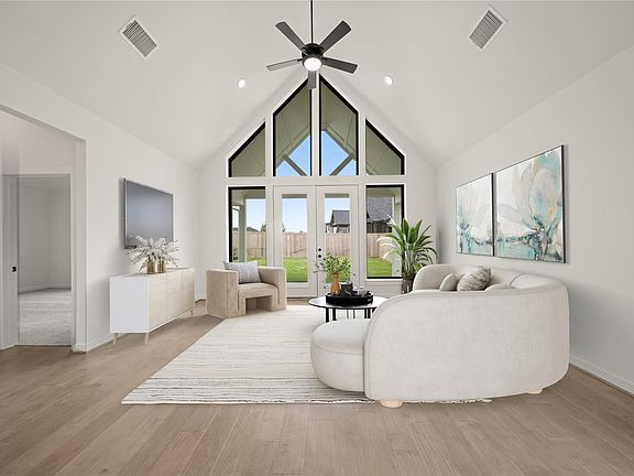 Lovely, modern, single-story plan by Newmark Homes, located in the fabulous community of Bridgeland! The Cameron plan features 4 beds, 3 baths, 2 car garage, breakfast area with a wide-open kitchen and family room. Soaring high 21' vaulted ceilings over-look a spacious covered patio.