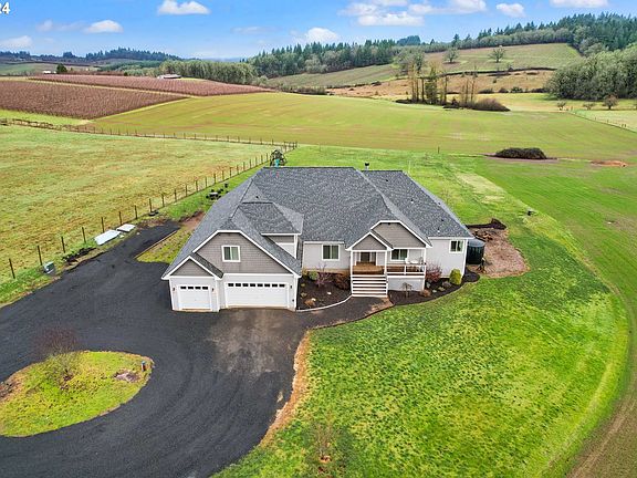Fabulous single level home (bonus on upper level) on 4.7 acres right in the heart of Yamhill Valley wine country. Unobstructed views of spectacular evening sunsets & stunning vineyard views are a daily enjoyment. This is a special property and a terrific opportunity for acreage in this desirable area. An OUTSTANDING floor plan features main level living with just the bonus/game room on the upper level. Vaulted ceilings, both formal living and dining open to a large great room with a cozy wood burning fireplace. Large, open kitchen has quartz counters, island, spacious eating area & pantry. Primary bedroom suite w/double vanity, soak tub in bath, granite counters, walk-in closet. All bedrooms are generously sized. Spacious laundry room. Enjoy outdoor BBQ's & evening sunsets from the oversized, partially covered backyard deck, perfect for entertaining. Country living yet close to town; 3.4 miles to DT Carlton, 4.7 miles to DT Yamhill, 6 miles to McMinnville & just 10 miles to Newberg. Yamhill county has over 100 wineries, some of the best in the world.