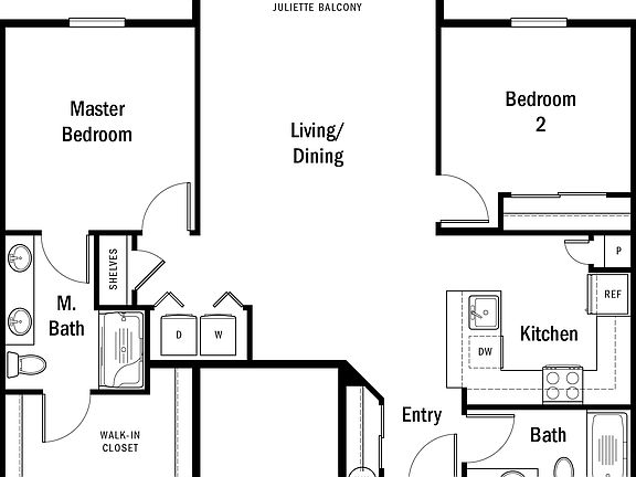 The C2 floor plan is a cozy single-level condominium. This residence features a living space, kitchen, and two bedrooms. It offers all of the essentials while located in the heart of Wilsonville close to shopping, dining, and transportation.