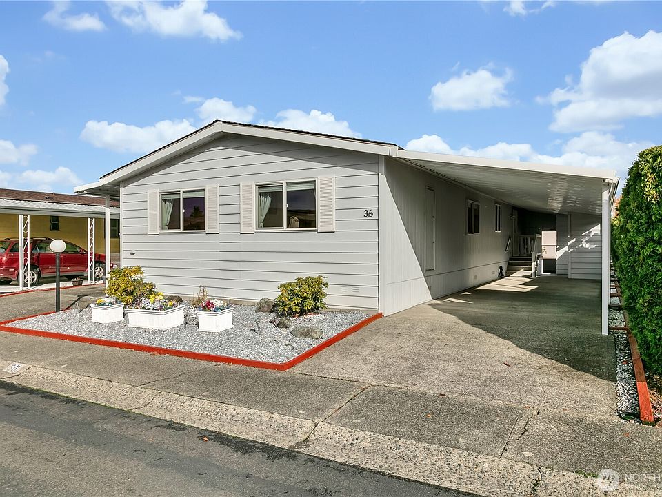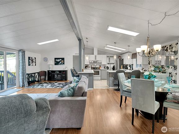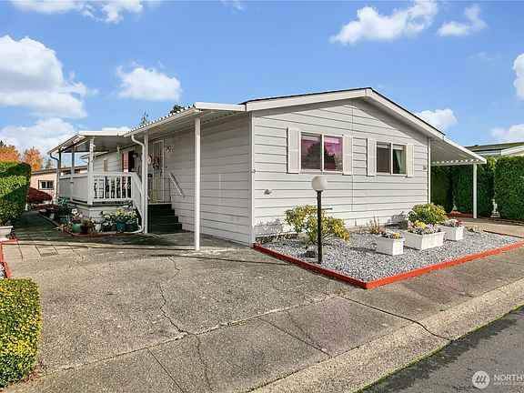 Move-in ready home in Pantera Lago Estates, a desirable 55+ community! This beautifully maintained manufactured home features a tastefully updated kitchen that opens to the spacious living area, perfect for everyday comfort and entertaining. The bathroom(s) have been refreshed, complementing the open-concept layout. Enjoy a newer covered side porch, a brand-new carport, and a generous storage area for added convenience. Just steps from the community clubhouse offering a swimming pool, hot tub, picnic area, and meeting room with a full kitchen. Ideally located near shopping, dining, freeways, Kent Station, and the Sounder train station. Ownership transfer must be approved by park management. Make this your new home.