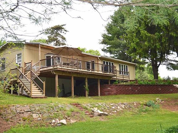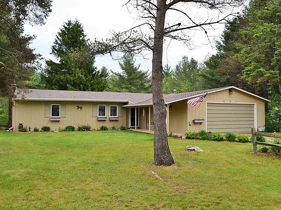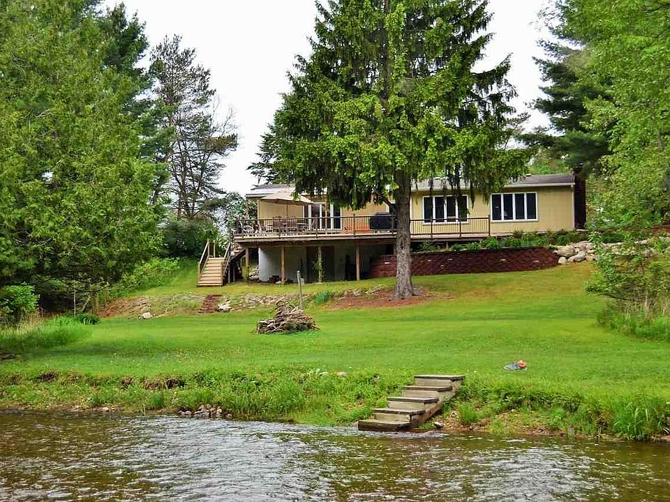 5 m/l acres on the Clam River with 3 beds, 2 baths ranch that has a walkout basement and attached 2 car garage. Enjoy the water view from the large deck. Property includes a modern horse barn with stables, tack room, and wash station and there is a fenced in pasture area. Home features a granite kitchen, custom cabinets, large master suite with walk in closet and bath. Home also includes a propane backup generator. Close to state land.