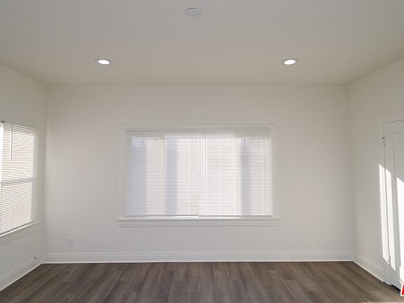 Fully renovated, large 1 bed 1 bath upper unit in Spanish-style fourplex in Oxford Square neighborhood near Hancock Park, Mid-Wilshire, Koreatown, and Miracle Mile. This upper 1,000+ sq ft south-facing unit has a lot of natural light, expansive city views and privacy. Eat-in kitchen, separate dining room, large living room with French doors (which can also be used as a flex 2nd bedroom), and ample closet space. Renovation was completed in December 2020 with new vinyl plank flooring, energy-efficient windows, recessed lights, LG AC/heater units and fresh paint throughout. New cabinets, gas stove, dishwasher, apron-front sink, and quartz countertops in the kitchen. New tile and pedestal sink in the bathroom. Separate locked garage bay is excellent for extra storage space. Shared grassy yard with fruit trees front and back. Good neighbors in the apartment. Quiet and clean neighborhood of mostly single family homes and plenty of street parking.