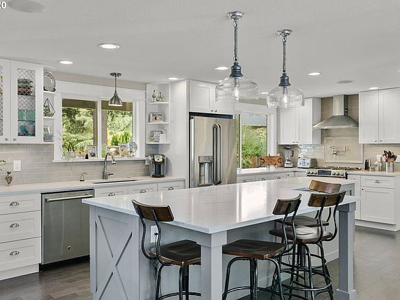 Wow! Truly spectacular remodel leaves no surface untouched. The grand open floor plan & gorgeous hardwoods shine throughout. Entertainers will love gourmet kitchen & quartz counters, SS 5-burner gas range, custom SC cabinets, large island w/ seating (check out the lights!) + slider access to covered patio. Escape to the master suite w/ custom WI closet, double vanities, freestanding tub, & heated marble floors. Situated on .39 acres near downtown West Linn, farmers market, & Fields Bridge!