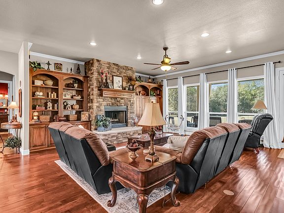 Floor-to-ceiling stone fireplaceStone fire-pitBrand new roofFormal dining spaceLarge dual-head walk-in showerGenerous walk-in closetExpansive covered porches