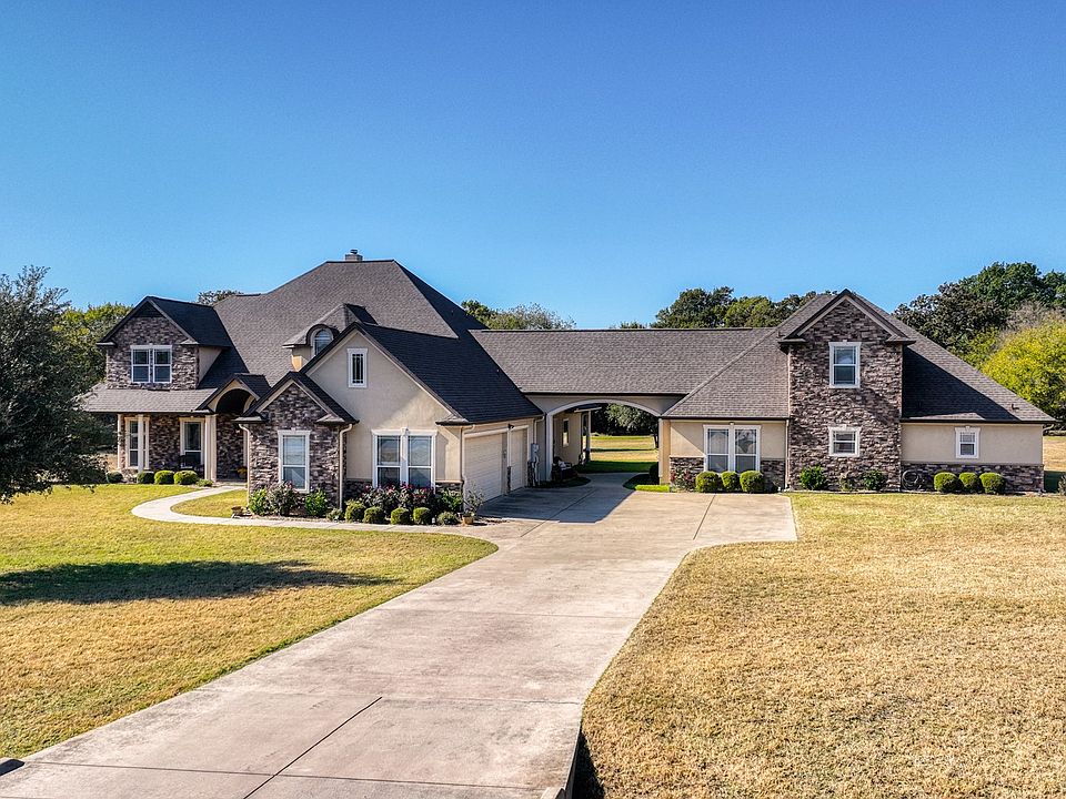 Experience luxurious multi-generational living in this impeccably crafted estate within the gated Boling Ranch Estates. Set on 2.5+ acres with a private back yard, this one-of-a-kind property boasts two independent residences. Offering the perfect blend of independence & connection—ideal for extended family, adult children, guests or in-laws. The main residence features 4 bedrooms, 4.5 bathrooms in over 3600 sqft of refined living space. The inviting living room showcases built-ins, floor-to-ceiling stone fireplace & expansive windows with backyard views. The chef-sized kitchen features double ovens, abundant cabinetry, prep island with adjoining breakfast nook, butlers pantry & formal dining space. The luxurious primary suite includes a sitting area with French doors to the back porch; the ensuite offers dual sinks, soaking tub, generous walk-in closet & large dual-head walk-in shower. Upstairs is a spacious game room with half bath, ideal for entertaining. Additional highlights include ensuite bathrooms for each secondary bedroom, laundry chute, BRAND new roof, 2022 HVAC systems. Oh yea, THE SECOND HOUSE! …Offering nearly 2000 sqft 3 bedrooms, 2.5 bathrooms, formal dining room, full laundry room & dedicated office—designed for flexible use, work-from-home or private living quarters. Outdoor amenities include expansive covered porches & a stone fire-pit, creating ideal spaces for gatherings & year-round enjoyment. So much to offer your family in this custom built, one & only multi-generational property - so bring the WHOLE family! . Txt keyword TEXAS5 to 88000 for Virtual Tours & More!