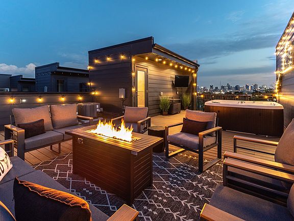 Cozy fireplaceOpen-concept layoutRooftop hot tubPrivate saunaSleek modern finishesAmazing downtown viewsPanoramic views of downtown