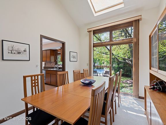 Fabulous Airhart contemporary from Scandinavian series w/vaulted beamed ceilings, tons of windows, & open floor plan! "Shaded" skylight in dining rm could be sun rm, if wish. FR has cedar accent wall & wood-burning FP that is adjacent to kitchen--great for entertaining or everyday living. Wonderful eat-in kitchen w/KitchenAid SS appls, newer microwave, granite counters, & double-drawer DW. Three sliding Andersen glass doors offer lots of light & panoramic vistas. 1st flr laundry is plus! MBR has WIC w/organizers & easy access to kitchen attic for floored storage. 2.5 car garage w/BI closets...New garage roof 2019 w/whole house Roof Max transferable 5 yr warranty. Newer concrete driveway, sidewalk, & front porch (2016) /Carpet upstairs (2017). 16 x 32 heated in-ground pool w/8 ft deep end & new automatic cover 2019. Fully fenced backyard w/mature trees & professional landscaping. Close to town & highly rated Naperville #203 schools! Impeccably maintained, move-in condition, neutral!