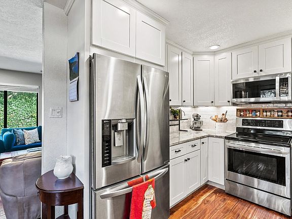 Step inside and immediately feel the pride of ownership. Every detail has been thoughtfully updated, from the recessed lighting that brightens the living spaces to the warm acacia wood flooring that flows seamlessly throughout. The chefs kitchen features gleaming granite countertops and stainless steel appliances, making meal prep and entertaining a joy. The spa-inspired bathroom showcases sleek marble counter top vanity and a newly tiled shower designed with style and relaxation in mind.