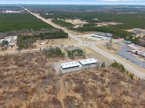 Step into irresistible possibility. One striking brand-new 5,500 sqft commercial building, customizable, & on 2.41 acres along a high-traffic state highway. Nearby to KwikTrip, Sand Valley Golf Resort, Lake Arrowhead Pines Golf, & two stunning lakes. Large windows offer sun-drenched interiors w/ modern, elegant design. Perfect for coffee shops, offices, & boutiques. The Sands East building can be divided into four 1,100 sqft units, framed & finished, each with private baths, & included by the seller. Outside features a large paved parking lot (included), shared commons, & firepit area. Built for visibility, designed to captivate!