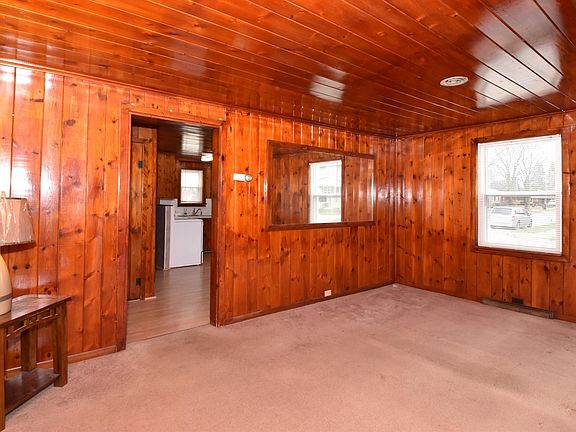 Cozy 2 bedroom, 1 bath ranch with that up north feeling featuring knotty pine walls & ceilings throughout. Newer vinyl windows and appliances include. Full basement with laundry area, storage and dry bar. The yard is of good size and the garage is spacious. Perfect starter!
