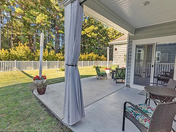 Welcome to your dream home! This 3-bedroom, 2-bathroom beauty offers comfort, style, and functionality. From the moment you step inside, you’ll be greeted by an airy open floor plan, luxury vinyl plank flooring, and a cozy gas fireplace perfect for relaxing evenings. The chef’s kitchen features a gas stove, under-cabinet lighting, and a massive walk-in pantry — ideal for those who love to cook and entertain. The formal dining room offers flexibility and can easily serve as a home office or bonus space. Enjoy convenience with a large laundry room and a tankless water heater, plus peace of mind with a Flow by Moen smart water system and Ring security cameras on both the front and back of the home, complete with door sensors. Plus, brand-new hurricane shutters convey for your peace of mind. Outside, you’ll love the fully irrigated and fenced backyard that backs up to mature trees and natural vegetation for extra privacy. The extended patio with chill outdoor lighting (which conveys!) sets the perfect vibe for outdoor entertaining. And don’t forget the huge 3-car garage — perfect for your golf cart, motorcycle, or extra storage! Located in a desirable gas community, you’ll also enjoy fantastic amenities including a large pool, community garden, and playground — all with low HOA fees.
