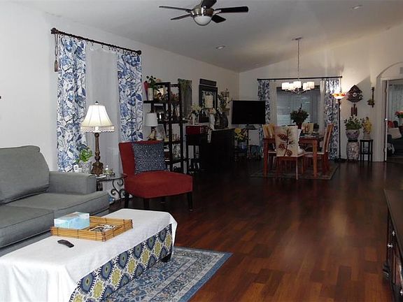 Step inside this well-designed single-family home offering comfort, functionality, and a layout that truly makes sense. You’re welcomed by a screened front porch and a beautifully landscaped front yard, setting the tone before you even walk through the door. Inside, you’ll find engineered wood flooring throughout the main living areas with ceramic tile in both bathrooms. The living and dining rooms flow together in one open space, creating an easy layout for everyday living or entertaining. At the heart of the home sits the open kitchen, featuring granite countertops and a central location that keeps you connected to everything happening in the home. The split bedroom floorplan provides privacy, and the spacious primary suite includes a garden tub for unwinding at the end of the day. Enjoy added convenience with an inside laundry room located just off the kitchen as you enter from the two-car garage. The backyard has been thoughtfully designed with low-maintenance rock landscaping instead of grass and is framed by a vinyl privacy fence along both sides and across the back. Additional highlights include high ceilings, approximately 1,716 heated square feet, and about 2,400 square feet under roof—giving you plenty of room to spread out. A comfortable, well-kept home with smart updates and a layout that works for today’s lifestyle—this one is ready for its next chapter.