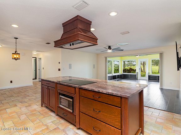Nestled in a resort-style country club community, this one-of-a-kind remodeled Annapolis model is a golfer's dream. With panoramic views of the Gordon Lewis-designed golf course and a prime location close to the clubhouse, this home captures the very best of Florida living. Inside, the open layout showcases a beautifully updated kitchen with Quartzite countertops, renovated bathrooms, and impact windows for peace of mind. Wide-plank solid walnut wood flooring and elegant tile run throughout, complementing the spacious Florida room and screened lanai where you can relax and take in the views. Thoughtful upgrades continue with epoxy flooring in the garage, newer cordless blinds, stylish light fixtures, and countless modern details. Completely move-in ready, this exceptional home blends comfort, style, and lifestyle in a community offering top-notch amenities designed to be enjoyed every day. Home to over 600 Military Veterans, Indian River Colony Club is a Private 55+ Country Club community with an extensive maintenance program for each home. It includes an18-hole golf course, fine dining restaurant with an executive chef & the 19th Hole restaurant and bar, fitness center, heated swimming pool, tennis courts, croquet, bocce ball, shuffleboard, and more. Pet-friendly, gated community with over 60 activities groups that have you feeling like you are on vacation.