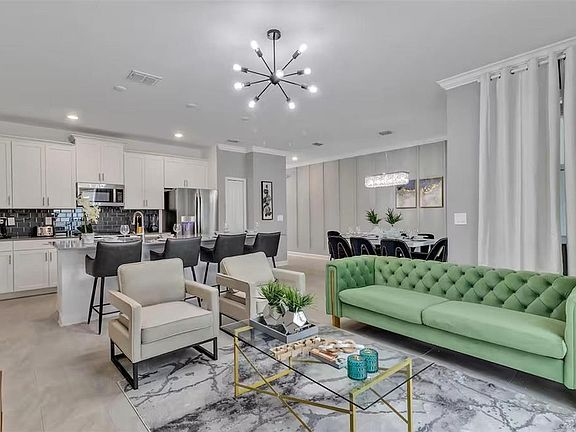 Fully Furnished Luxury Townhome in Champions Gate – Turnkey Airbnb Investment. Welcome to 1144 Kingsbarn St, a beautifully furnished 4-bedroom, 3-bathroom townhome designed for both comfort and investment potential. Nestled in the highly sought-after Champions Gate community, this stylish retreat is fully equipped and Airbnb-ready—perfect as a vacation rental or personal getaway. Step inside to an open-concept floor plan featuring designer finishes throughout. The kitchen boasts sleek quartz countertops, 42” cabinetry, stainless steel appliances, and a modern island ideal for entertaining. The spacious primary suite offers a private en-suite bath and ample natural light. With three additional bedrooms and well-appointed bathrooms, this home comfortably accommodates family and guests alike. Step outside to your private, screened-in pool and covered patio—perfect for enjoying Florida’s sunshine in peace or hosting unforgettable evenings. As part of the Champions Gate Resort, residents and guests enjoy access to world-class amenities including: The Oasis Clubhouse with a resort-style pool, lazy river, water slides, spa, and splash pad A state-of-the-art fitness center, movie theater, arcade, and on-site concierge. 7 tennis courts, 3 golf courses, and multiple dining options including a tiki bar and grill Located just minutes from Orlando’s world-renowned theme parks, high-end shopping, and a vibrant dining scene, this home offers unmatched convenience and lifestyle appeal. Whether you're looking for a lucrative short-term rental or a turnkey second home, this property is a rare opportunity in one of Central Florida’s top resort communities.