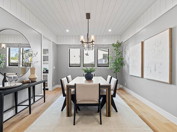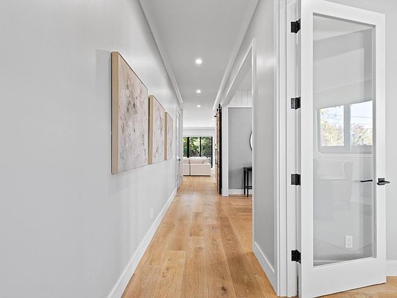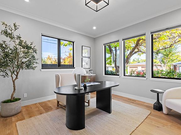 Modern design, impeccable craftsmanship, and curated finishes define this exceptional 2020 home in a premier neighborhood just one block from Red Morton Park. Every detail reflects designer quality, from tongue and groove wood paneling and artfully selected stone and tile to custom lighting and vanities. The open-concept great room centers on a striking feature wall with gas fireplace and extends through sliding glass doors to a covered patio, built-in barbecue, and spacious rear yard. A stunning kitchen with large island seating, butlers pantry, entertainment bar, and formal dining room anchor the main level, which also includes a bedroom suite and separate office. Upstairs are the primary suite with heated floor bath, two additional bedrooms and bath, plus a flexible-use lounge. Additional highlights include white oak floors, air conditioning, large laundry room, and EV charging in the 2-car garage, all just moments from vibrant downtown Redwood City.