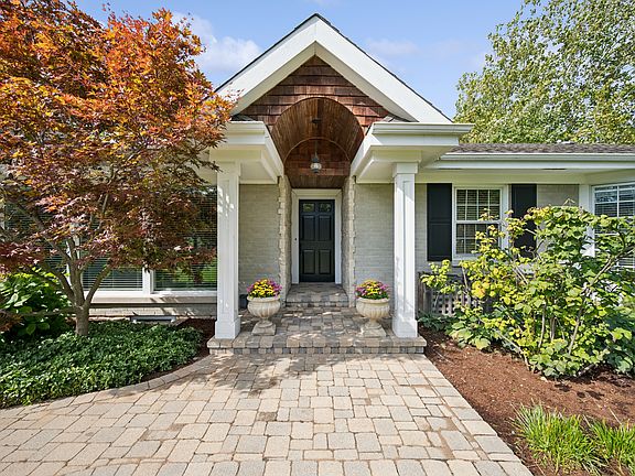 Tucked away on a quiet cul-de-sac, this beautifully updated brick and stone ranch combines timeless elegance with modern comfort. The home features a bright, open floor plan that has been meticulously maintained and stylishly appointed throughout. Step into the dramatic living room, where a vaulted ceiling and striking fireplace create a warm, inviting atmosphere. Just off the main living space, a sun-filled vaulted sunroom offers picturesque views of the manicured front garden through its expansive windows. The heart of the home is a spacious gourmet kitchen outfitted with custom Amish cabinetry, granite countertops, and premium appliances. It flows seamlessly into the vaulted breakfast room with custom built-ins and continues into the adjacent family room, highlighted by a tray ceiling and marble-surround fireplace. Four generously sized, light-filled bedrooms feature custom-designed closets by Closets by Design. The home also boasts recently renovated bathrooms, refinished hardwood flooring throughout, and elegant plantation shutters. Additional conveniences include a main-level laundry room and a mudroom with built-in cabinetry. Downstairs, the finished basement offers 600 square feet of flexible recreation space and storage. Step outside to a private backyard retreat, professionally landscaped and designed for year-round enjoyment. A stone wood-burning fireplace, paver patio, winding walkways, and stone half-walls are nestled among vibrant perennial gardens, a vegetable garden, and mature trees. The fenced yard is equipped with an in-ground sprinkler system, completing this peaceful outdoor sanctuary.