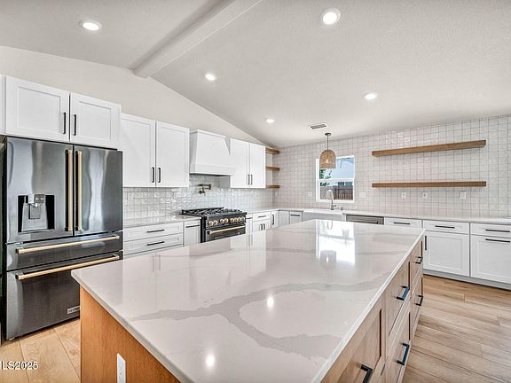 Welcome to 1144 Spruce Meadows Dr, a stunning 4-bedroom, 2-bathroom home nestled in the highly sought-after Silver Ridge neighborhood of Sparks, Nevada. This gorgeous property offers 2,210 square feet of contemporary living space. Built in 2020, this residence features an open-concept design with abundant natural light, highlighting luxury vinyl flooring and modern finishes throughout. The gourmet kitchen is equipped with top-of-the-line Z-line appliances, a large quartz island, and, cabinetry with roll out shelving and ample amount of storage, perfect for family gatherings and entertainment! Situated on 0.31 acres, the professionally landscaped backyard serves as a private oasis, with double gated RV parking, separate fenced dog run, gazebo, a master swim spa, and room for all your toys. This backyard is truly ideal for relaxation and entertaining. This home exemplifies pride of ownership and offers a perfect blend of comfort and luxury. Schedule your tour today!