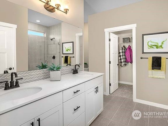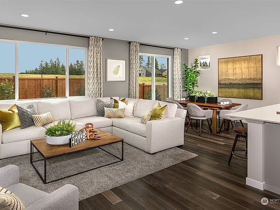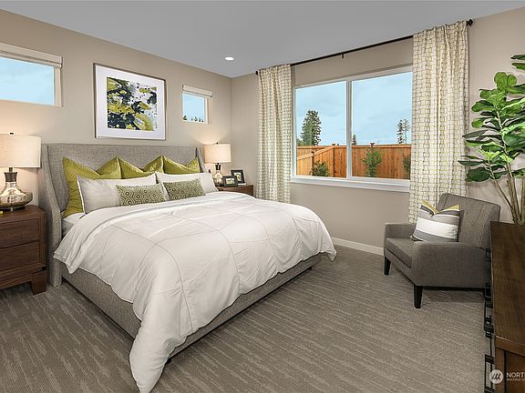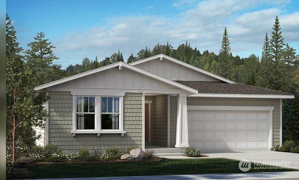 Welcome home to Alder Brook in Enumclaw! Featuring our Presale 1629 3 bedroom, 2 bath rambler. This home sits on a private lot on a dead end street. Walk in to be greeted by wide hallways and 9 ft ceilings. At the entry of the home you will find 2 bedrooms and a full bath. This home has standard quartz countertops in bathrooms and kitchen.LVP in the entry, hallways, kitchen, great room, laundry room and all bathrooms. This home features a large island, lots of countertop space, a walk-in pantry, a large laundry room, fireplace and a tucked away primary bedroom with super primary bath and walk in closet. This is one of our homes that has views of Mt Rainier. Come take a look at Enumclaw's newest community.