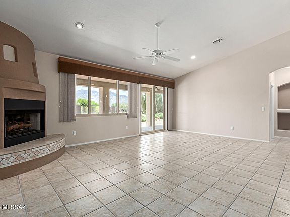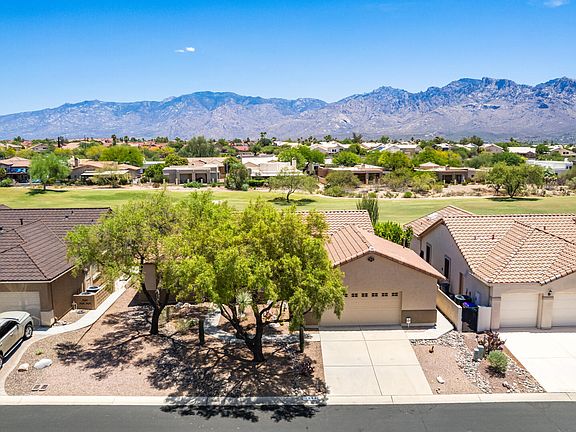 VIEWS! VIEWS! VIEWS! Located in the heart of Oro Valley, nestled on the 5th fairway of the El Conquistador Golf Course, you'll find this well-maintained 3 bed/2 bath split floor plan home. Featuring a great room w/gas beehive fireplace & patio access to stunning panoramic views of the Catalina Mountains. Eat-in Kitchen with GE Profile stainless appliances (incl 2023 microwave), granite counters and work island plus peek-a-boo view of Tortolitas. Tile throughout the home except in the bedrooms, and triple pane windows, help keep the home cool. Newer GE washer & dryer stay. Break resistance roof tiles installed on back half of home in 2021. The oversized garage offers plenty of storage w/utility sink and entrance to backyard. Close to everything Oro Valley has to offer.