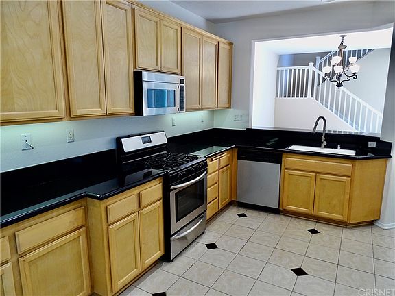 Lots of new stuff here including flooring and paint. Located in "The Promenade at Porter Ranch" Nice open feel to it. Granite kitchen counter tops, breakfast area in the kitchen, dining room, laundry room upstairs, one bedroom and 3/4 bath downstairs, master suite with upgraded bath and walk in closet, living room with fireplace and media niche, double attached direct access garage, patio area...Community pool and spa. Great schools!