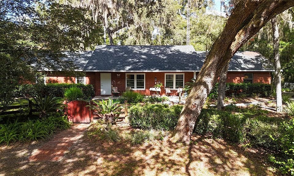 Welcome home to wide open spaces and picturesque country living! This solid 3 bedroom, 3 bath brick home offers comfortable living space on over 20 acres to plant your roots. Enjoy your private oasis featuring a comfortable primary suite with double vanities, sunroom/office, walk-in pantry, laundry room with mud room with shower. Abundant natural light, and views in every direction, a large family room with fireplace, a modern kitchen, indoor laundry room, two-car garage, and ample storage. Relax and entertain in your expansive front and rear garden patios. Recent updates include roof, flooring, kitchen and office, windows, ceiling fans, paved driveway. Mature planted pine forest offers income opportunity and tax benefits. 600+ foot of frontage on Archer Road. Conveniently located near shopping, dining, schools, UF, Shands and VA, this home is ready for you to enjoy space of the country and benefits of the city!