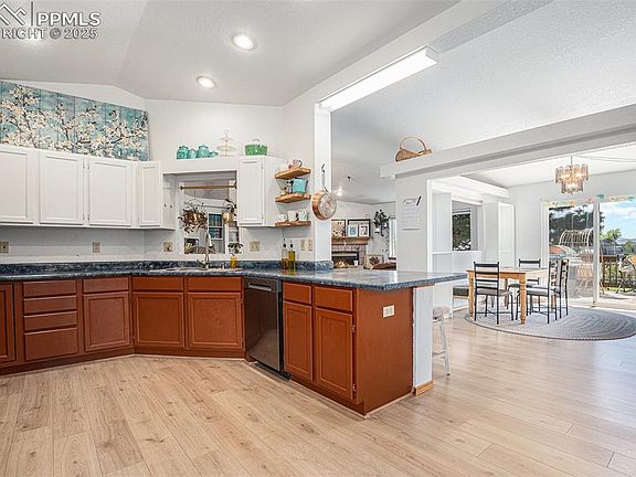Welcome to the most charming home in the most charming community of Woodman Hills! This is the ultimate location for those who love the outdoors, an active lifestyle, and community activities. If you’ve been dreaming of a place where you can enjoy privacy, space, and a connection to nature—without giving up the convenience of town—this is it! This open-concept ranch feels light, cozy, and welcoming the moment you step inside. The main floor flows easily for everyday living, while the finished basement adds even more room with a large great room, full bathroom, and an extra bedroom—perfect for guests or a home office. Outside, you’ll find what really sets this home apart: perennial gardens, a mini-orchard with cherry and peach trees, and greenbelt wrapping around three sides. It’s a peaceful setting that invites you to slow down, put your hands in the soil, and enjoy a taste of homesteading now, with plenty of room to grow into more later. The property also features brand-new, paid-off solar, mature shade trees that keep the home cool, and a location that’s hard to beat—just 1 mile from shopping and dining, blocks from parks and trails, and minutes from local farms and farmstands. And when you need to connect beyond your retreat, Colorado Springs, the Air Force Academy, and Peterson AFB are all close by. This isn’t just a house—it’s the lifestyle you’ve been hoping to find: peace, privacy, and room to thrive, all within reach of everything you need.
